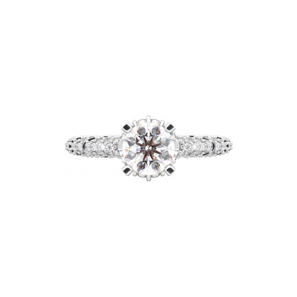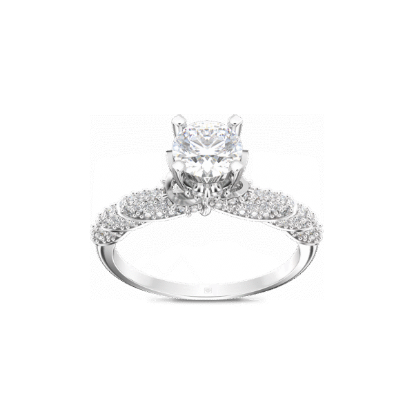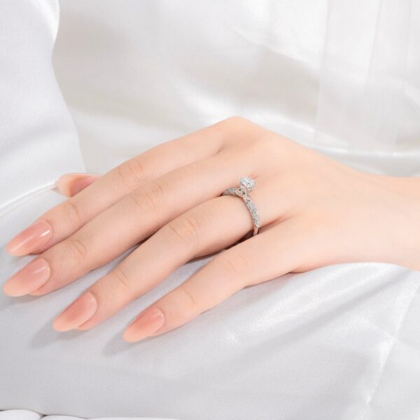 Kiểu dáng: 6 chấu cổ điển, tôn lên viên đá chủ tròn hoàn hảo – biểu tượng cho tình yêu trọn vẹn.