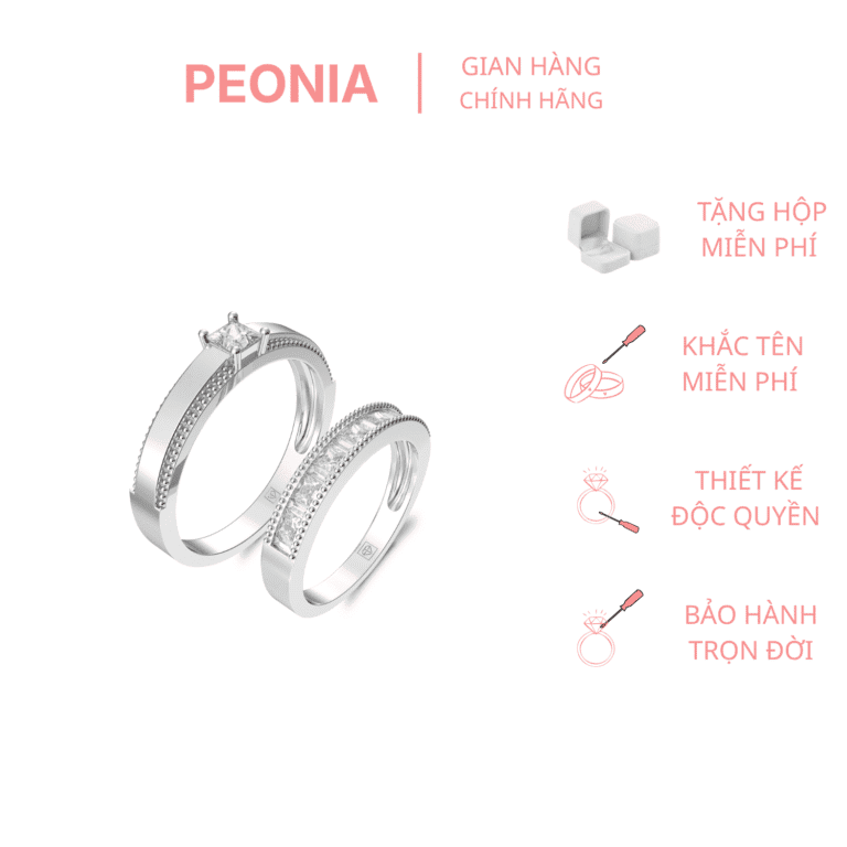 Khi hai tâm hồn tìm thấy nhau giữa muôn vàn người, tình yêu ấy xứng đáng được lưu giữ bằng một biểu tượng vĩnh cửu. Nhẫn cưới vàng trắng Peonia 14K đá CZ Blush chính là hiện thân của khoảnh khắc thiêng liêng ấy — thanh khiết, tinh tế và tràn đầy cảm xúc.