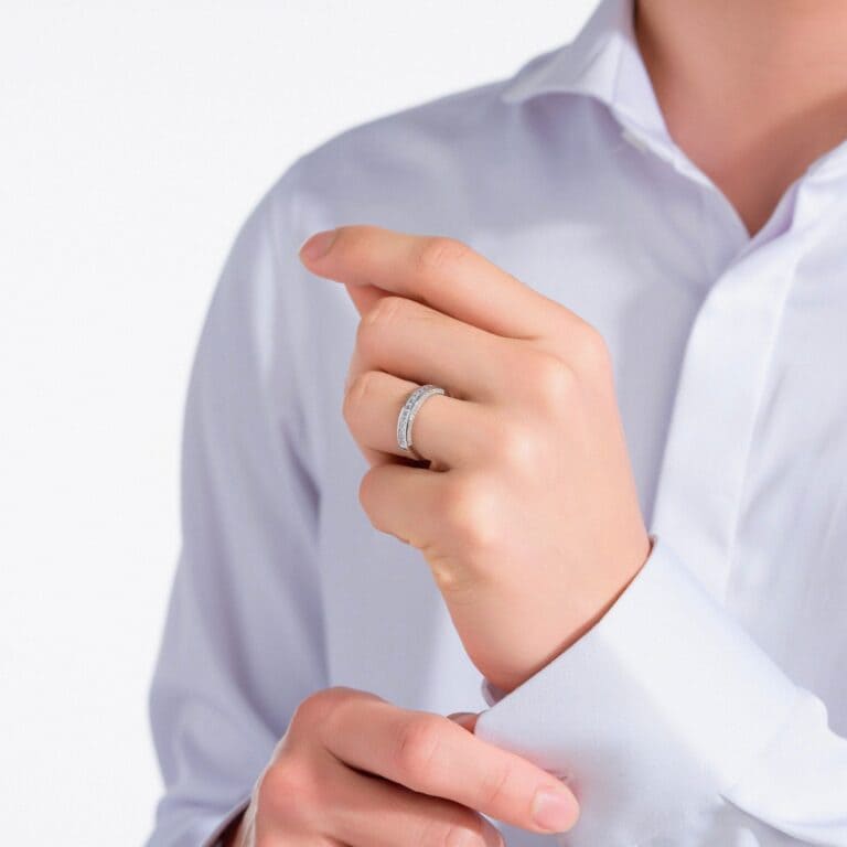 Nhẫn nam mang dáng vẻ khỏe khoắn, đơn giản mà đẳng cấp – tượng trưng cho sự mạnh mẽ và bền vững của tình yêu người đàn ông dành cho nửa kia.