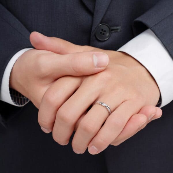 – Nhẫn nam đơn giản hơn với đường nét gọn gàng, kết hợp viên đá sáng nhỏ tạo điểm nhấn đầy tinh tế, mang đến cảm giác lịch lãm và hiện đại.