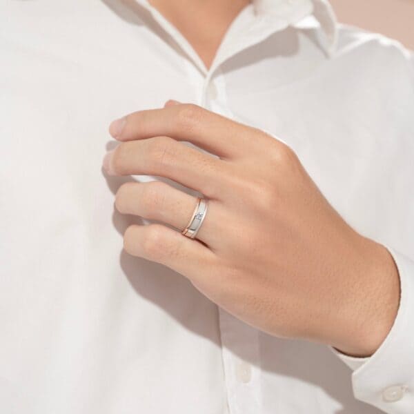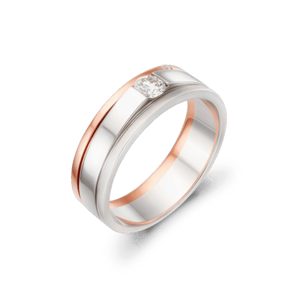 – Nhẫn nam thiết kế mạnh mẽ, điểm nhấn là viên kim cương Lab-Grow sáng ở trung tâm, thể hiện sự vững chãi và lịch lãm.