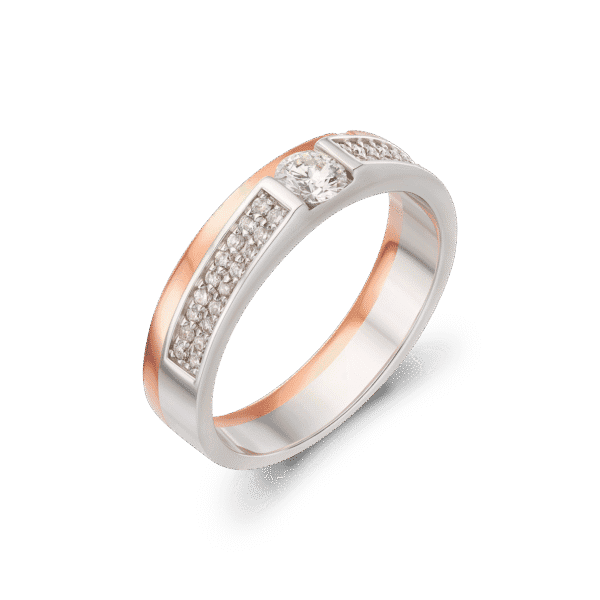 Cặp nhẫn nổi bật với sự kết hợp tinh tế giữa hai sắc vàng trắng và vàng hồng, tạo nên vẻ đẹp hài hòa, trẻ trung mà vẫn đậm nét tinh tế.